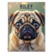 Pug themed personalized notebook. The sweetest little close up pug face.