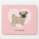 Sweet illustration of a cute pug on a pink background and a large pink heart.