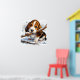 Cute basset hound pup enjoying the snowfall while playing with a stick in the snow. Featuring a heartwarming winter scene complete with snowflakes and a playful expression capturing joy and warmth.