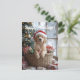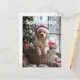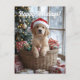 Adorable Puppy with Santa Hat in Basket Holiday Postcard