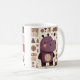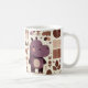 This cute design features a purple happy hippo surrounded by trees and leaves in a brown seamless pattern. Perfect for animal lovers & coffee lovers!
