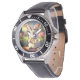 My husband loves the watch, he likes the dial, the graphics, the band, and it keeps perfect time.
