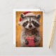 Adorable Raccoon in a Santa Hat Holding a Present Holiday Postcard