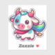 This delightful design showcases an adorable cartoon-style cow with rainbow accents on its horns, tail, and scarf. Perfect for lovers of cute and colourful art, this whimsical cow brings a burst of joy and charm with its playful design and vibrant pastel colours. Ideal for fans of farm animals, kawaii aesthetics, or unique artwork that stands out, this illustration captures the fun and fantasy of a rainbow-inspired theme. A perfect addition to brighten any collection for animal lovers or those who enjoy vibrant, quirky designs.