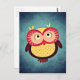 Adorable Red and Yellow Owl Illustration Postcard