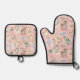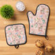 Adorable Retro Pink Green Christmas Oven Mitt Set