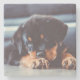 This is a Very Adorable Rottweiler Puppy Dog Resting Stone Coaster