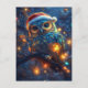 AI generated art of an adorable owl in a Santa hat sitting on a branch with festive lights