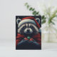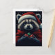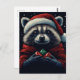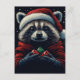 AI generated art of an adorable racoon in a Santa suit holding red and green dice