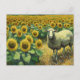 Adorable Sheep in a Sunflower Field Postcard