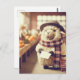 An adorable shopping sheep in a retro style makes for an adorable postcard to send a short hello to a friend