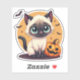 Cute Siamese kitten in kawaii pastel Halloween art, designed for decorations, planners, and scrapbooking.