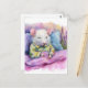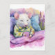 Adorable Sleeping White Mouse in PJs Watercolor Postcard