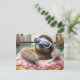 Adorable sloth enjoying life and floating in a pink doughnut AI generated art