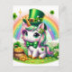 Adorable St. Patricks Day Unicorn Rainbow Gold Postcard