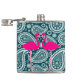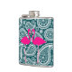 Adorable Teal Blue and White Paisley-Flamingos Hip Flask