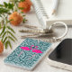 Adorable Teal Blue White Paisley-Pink Flamingos Key Ring
