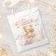 Send guests home with love using this adorable teddy bear favour bag! Featuring a watercolor bear swinging through dreamy pink clouds and golden stars, with a customisable name and balloon detail, it’s the perfect addition to your baby girl’s 1st birthday or shower celebration. Ideal for holding candies, small gifts, or thank-you notes. A charming match to the full teddy bear birthday party collection.