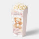 Add a sweet touch to your celebration with this adorable teddy bear popcorn favour box! Designed with a watercolor bear on a swing, soft pastel clouds, golden stars, and a pink balloon, it’s the perfect match for a baby girl’s 1st birthday. Personalised with your child’s name and the phrase “Let’s Celebrate!”, this treat box is ideal for popcorn, candy, or small gifts for your party guests.