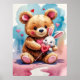 Adorable Teddy Bear Hugging Bunny with Hearts Poster