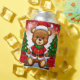 Adorable Teddy Bear in Santa Suit Can Cooler