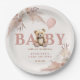 Elevate your baby shower decor with these charming paper plates, perfect for celebrating a baby girl! This delightful design features a sweet teddy bear, a soft pink balloon, and elegant pink and neutral boho-style florals with pampas grass. These disposable plates are not only adorable but also convenient, making cleanup effortless. Customise them with the baby's name and shower details to create a memorable and coordinated party theme.