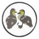Cartoon of twin baby duckling, huddling together. Base model was done with Muscovy duckling, the markings are similar to woods duck after hatching, and its not till adulthood before gender and breed is determined. So closely related they can breed together, sadly the end results are called mules.