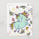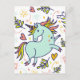 An adorable doodle style image on a unicorn with hearts, stars, and plant leaf details