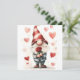 This adorable illustration features a charming gnome holding a single red rose, surrounded by a flurry of hearts. Perfect for Valentine's Day, this whimsical image is sure to bring a smile to your face.
