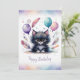 Adorable Watercolor Black Kitten Happy Birthday Holiday Card