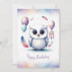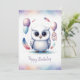 Adorable Watercolor Snowy Owl Happy Birthday Holiday Card