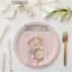 Adorable, little teddy bears are the centerpiece for this charming, baby shower paper plates! A cute bear holding flowers and peeking out of a doorway with a border that says "Welcome Baby" adorns the plates with beautiful watercolor touches. All done with a dusty pink background and touches of lovely shades of pink and grey. So sweet and cute!