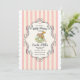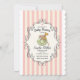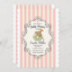 An adorable baby shower invitation with a pink and cream background and a fancy frame with a tote filled with a teddy bear, giraffe and baby bottle. (<a href='https://www.freepik.com/free-vector/pretty-frame-on-red-lines-for-baby-shower_939425.htm'>Designed by Freepik</a>). <br/><br/>The card is easy to customise with your wording, font, font colour and choice of six paper types.<br/><br/>Not exactly what you're looking for? All our products can be custom designed to meet your needs at no extra charge.<br/><br/>Simply contact us at askcottonlamb@gmail.com<br/><br/>Coordinating products available: