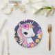 Adorable White Baby Unicorn with Flowers Paper Plate