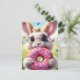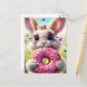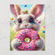 Adorable white rabbit with a doughnut postcard