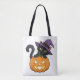 Adorable Witch Cat in a Jack-o'-lantern Tote Bag