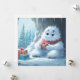 Celebrate the holidays with a charming design featuring a cute yeti surrounded by colorful Christmas presents in a cozy snow-covered cave. The whimsical illustration includes a warm, cute and cheerful vibe.