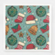 Marvellous image on paper napkins of a Santa hats, bells, ornaments, and Christmas stockings pattern.