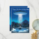 Delightfully funny illustration of people getting abducted by a UFO from their campsite. Front says, "Sorry I've been a bit busy lately." Click on "Personalise" to enter your own message or delete the sample text to leave it blank on the front or the back so you can write it in later.