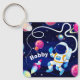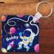 Fantastic image on a customised keychain of a cartoon spaceman floating in space amongst colourful planets. Click on "Personalise" to customise with your name or other text you like.