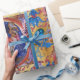 "Joy ,Peace,Love " Elegant,classic, bright and merry Christmas design on parchment with antique Florentine floral motifs and a shiny 3D blue sapphire gemstone elaborated from Italian mediaeval miniature from San Miniato,Tuscany