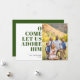 A modern religious holiday photo card, featuring the well-loved chorus 'O come let us adore Him' from the carol O come, all ye faithful in bold festive green type. Personalise with your sign off in black, and your favourite photo.