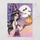 This is a painting originally done in watercolors by me, Nikki Burnette! Adrianna is a cute little witch painted in front of a starry night sky holding a pumpkin. I've customised the image to create this beautiful postcard! I hope you enjoy it.