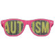 The Team here at Autism A Kids. com are so excited to reveal our hot new range of Adult pink awareness shades. We have all had those moments when people misjudge our autistic children in public. How cool would it be if you had these on at that time or simply wear these for Autism Awareness Day! It gets better! Profits of these will go towards helping a school or child with Autism. We offer THREE STYLES of Awareness shades! Aviator or two different styles; our style is available in adult and kids sizes (See our kids range)size fits 4-8 year old children. CHOOSE FROM 9 FRAME COLOURS Black,white,red,orange,yellow,green,blue,pink,purple. Dimensions: 14.6 cm w x 15.2 cm l x 5 cm h (5.75" w x 6" l x 1.94" h), adult size or 12.7 cm w x 14 cm l x 4.5 cm h (5" w x 5.5" l x 1.75" h), kid size.