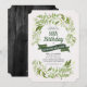 Beautiful nature-inspired Birthday invitation with a frame made of sprigs of fern, pine, and woodland greens. Great invitation to use for anyone- from adults celebrating big milestones, to teens and children. Modern and simple hand painted sprigs surround your text announcing your big party. In shades of woodland green, greys and browns. Grey wood grain wash on the reverse side.