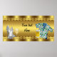 Man and woman birthday party banner with sparkle high heel shoes and wine glass, and beach shirt and beer on a gold background. You can personalise this fun adult birthday party banner with your choice of text in the font style and colour of your choice.