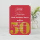 Red and gold, big age, milestone adult birthday party invitations. Celebrate a milestone birthday (50 is the sample, but works for all ages) with fun and modern invitations. White, modern fonts, with wording set up for a surprise party. At the top, "Shhhh... it's a surprise" with bold, printed text for age and name. All party info is added in a paragraph. A modern, minimalist style that will work for men and women of all ages. Also buy as an instant download to share online digitally. Choose paper and corner / edge designs (notched corners shown) for printed invitations.