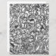 Colouring page for fun and relaxation based on a William Morris design of stylised acanthus leaves and bachelors button blossoms