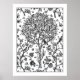Colouring poster for fun and and relaxation in a vintage William Morris Art Nouveau take on a traditional "tree of life" pattern, featuring a fantasy tree with branches filled with exotic flowers and birds