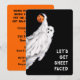 Funny "Let's Get Sheet-faced" Halloween costume party invites featuring creative trick-or-treating ghost.